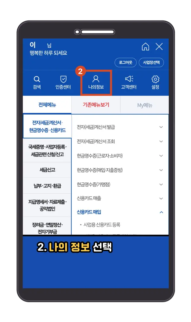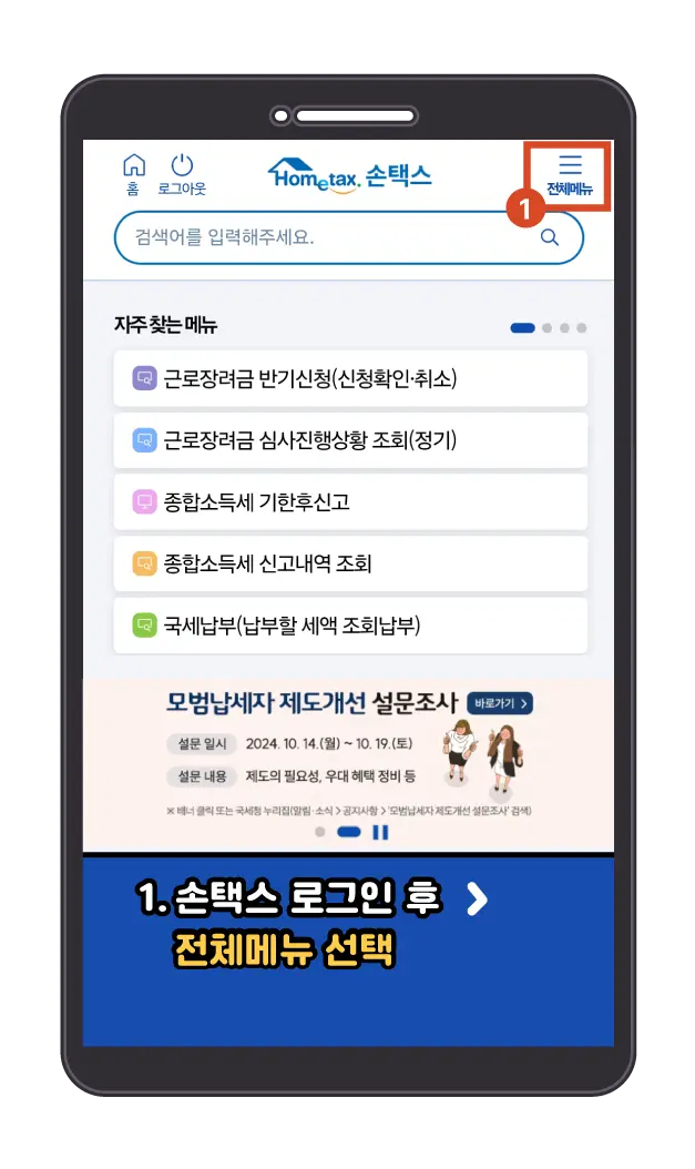 모바일(손택스)에서 홈텍스 id/pw 찾기