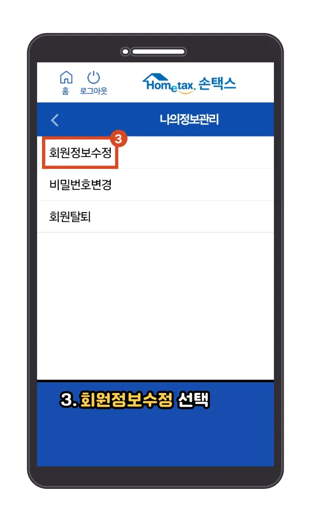 - 회원정보수정 탭을 클릭합니다