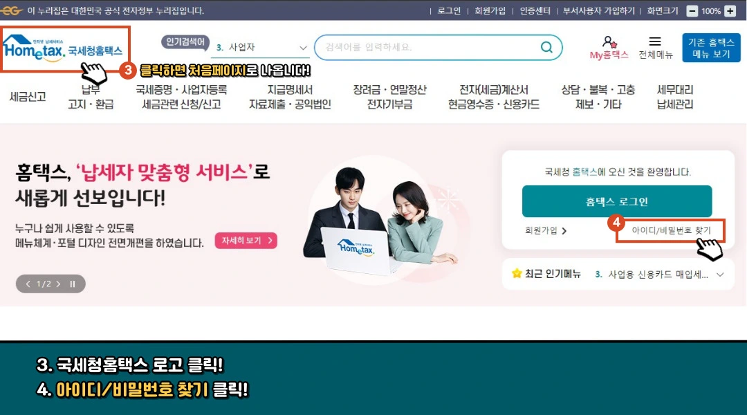 #홈텍스#아이디찾기#비밀번호찾기#손택스