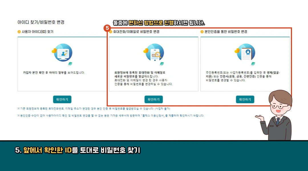 2단계: 아이디 찾기/비밀번호 찾기 메뉴 선택